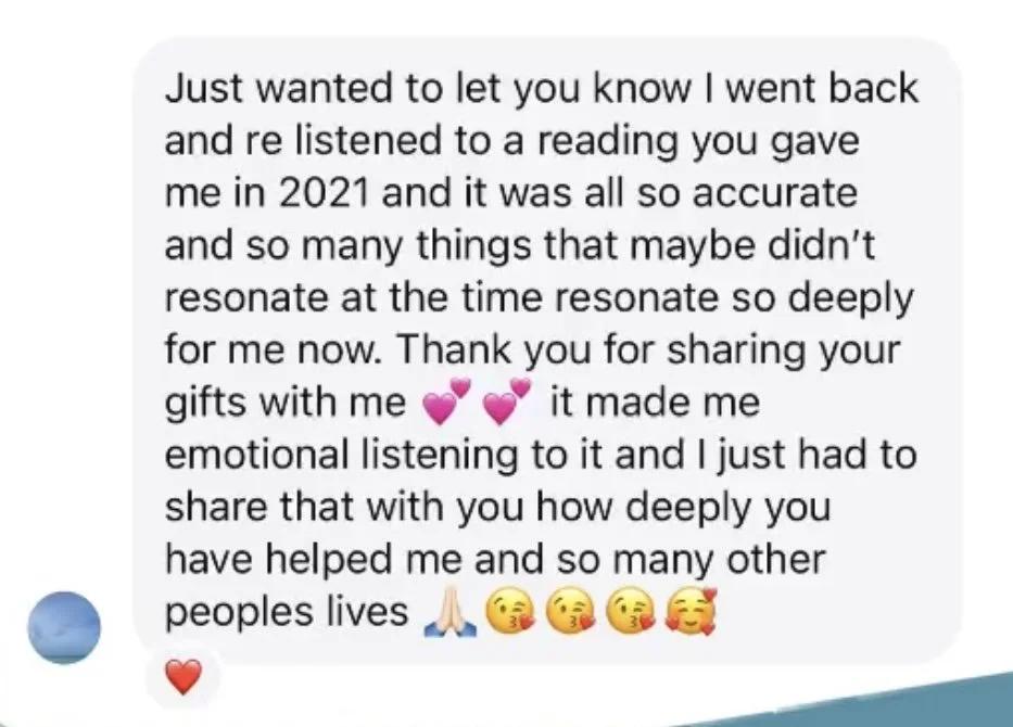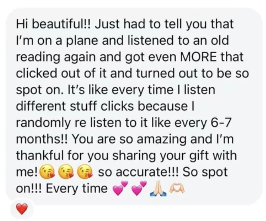 Receive guidance and connection with a Deceased Loved One in the Spirit World. In this reading you will receive direct communication, life guidance on current situations and connection from your Loved One who has passed away. A reading filled with connection, healing, closure and clarity.